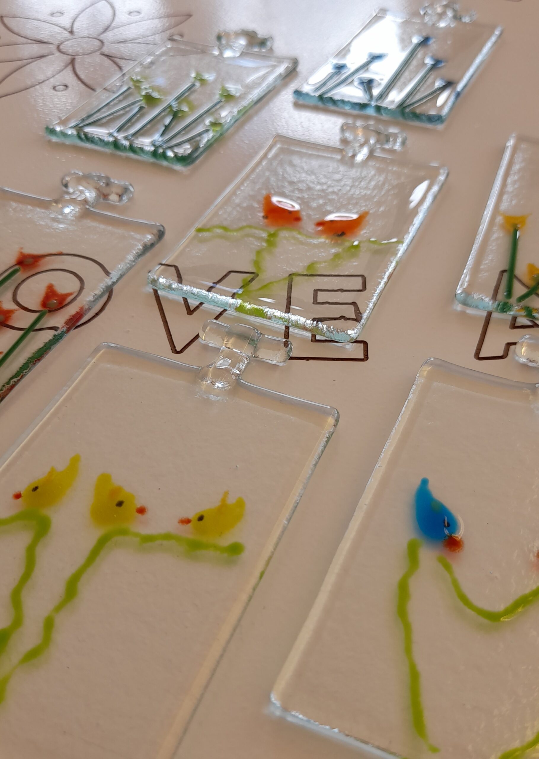 We make and sell fused & pulled glas artistic objects & home accesories.